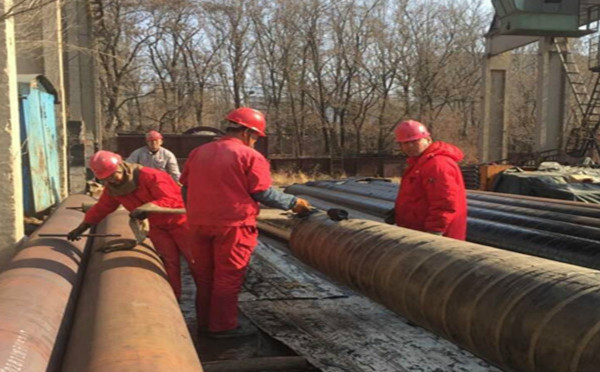 3、材料使用,采取纏繞方法進(jìn)行。粘彈體防腐帶軸向搭接≥10mm,粘彈體防腐帶始末兩端搭接長(cháng)度≥50mm,粘彈體防腐帶與管體原防腐層搭接≥50mm;聚丙烯防腐膠帶軸向搭接(膠帶寬度)≥50%,兩端包覆粘彈體防腐帶防腐層各100mm。