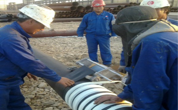 3)、特加強級總厚度≥2.0mm時(shí),可選厚度為2.0mm以搭接膠帶寬度的15~20%方式纏繞一遍;也可只選用厚度為1.0mm以搭接膠帶寬度的50~55%方式纏繞一遍,形成二層結構。